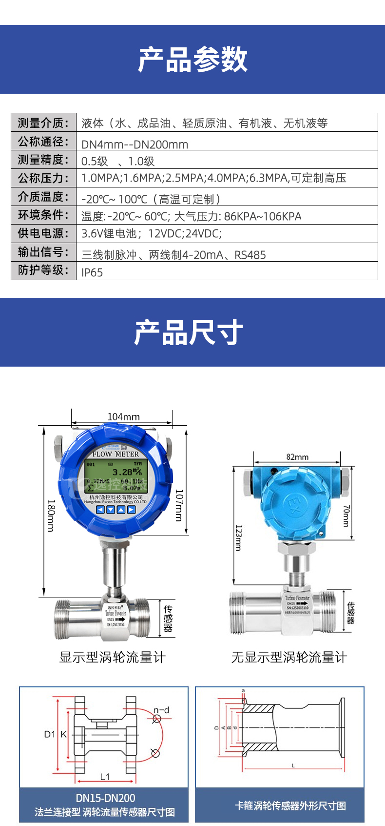 液體渦輪流量計,基于力矩平衡原理,屬于速度式流量儀表。傳感器具有結(jié)構(gòu)簡單、輕巧、精度高、復現(xiàn)性好、反應(yīng)靈敏,安裝維護使用方便等特點,廣泛用于石油、化工、冶金、供水、 造紙等行業(yè)