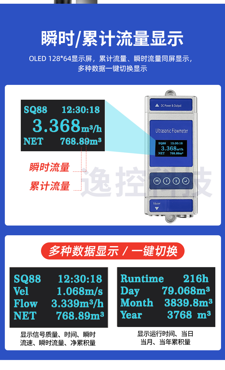 杭州逸控固定式夾鉗式超聲波流量計,不破管,輕松測量,擁有RS485通訊接口,儲存功能、報警輸出等功能。產(chǎn)品為鋁合金外殼,四個輕觸按鍵,4寸高清液晶顯示屏??捎糜跐崈袅黧w流量測量,并適用于多種管道。