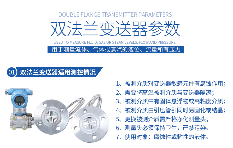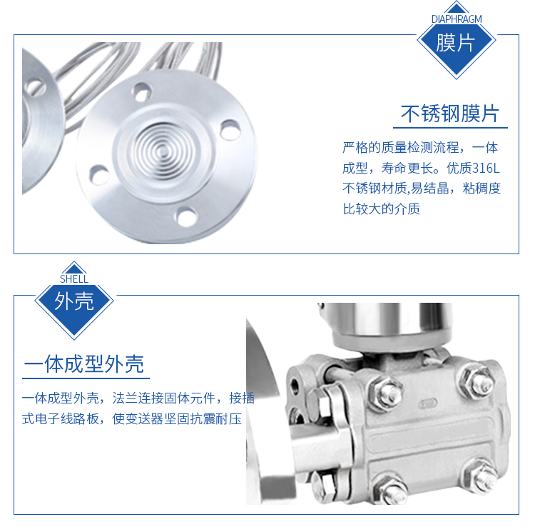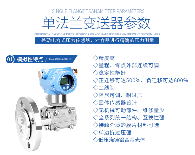 法蘭式液位變送器的關鍵原材料、元器件和零部件整機經過嚴格組裝和測試,該產品具有品種規(guī)格齊全、安裝使用簡便等特點。由于該機型外觀上融合了目前被廣泛使用的兩種變送器的結構優(yōu)點,讓使用者有耳目一新的感覺。