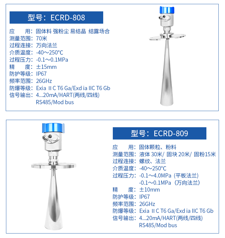 高頻26G雷達式物位測量儀表,測量距離可達到80米,天線被進一步優(yōu)化處理,新型快速的微處理器可以進行更高速率的信號分析處理,使得儀表可以用于反應釜、固體料倉等一些復雜的測量條件。