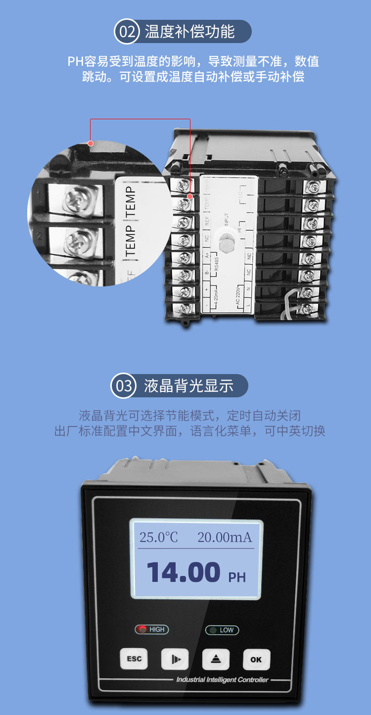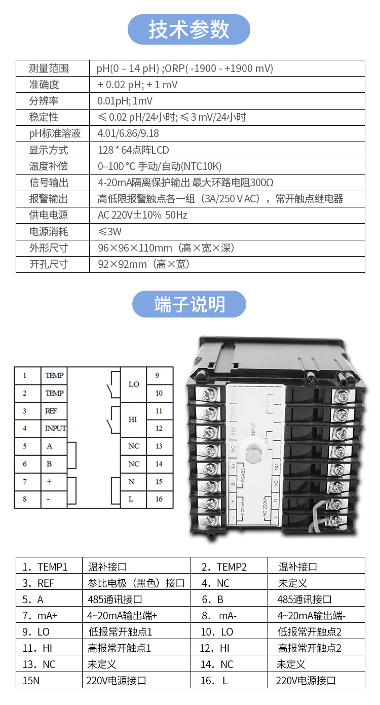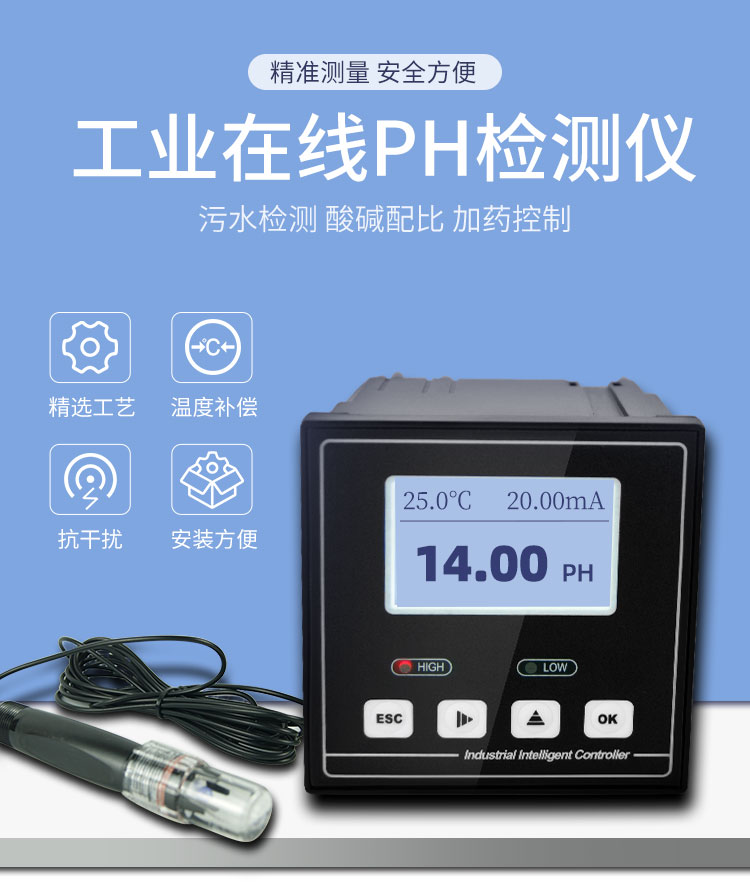測試儀由傳感器和二次表兩部分組成??膳淙龔秃匣騼蓮秃想姌O,以滿足各種使用場所。配上純水電極,可適用于電導率小于3μs/cm的水質(如化學補給水、飽和蒸氣、凝結水等)的pH值測量。